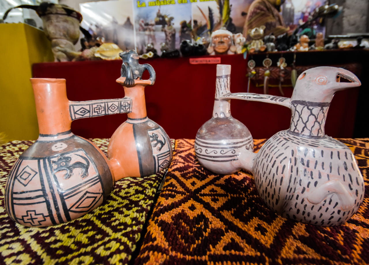 Whistles, flutes, antaras, quenas, ocarinas, pututos, drums, and especially whistling bottles are part of his exhibition, pre-Columbian musical instruments, amazing ancestral objects that visitors may acquire in replica form.